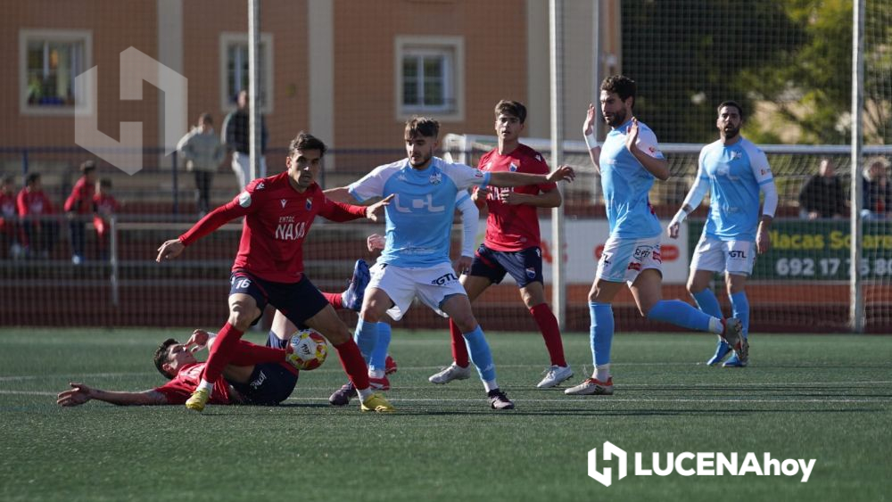 Con el paso de los minutos, el Ciudad de Lucena fue haciéndose con el control del balón y comenzó a merodear el área sevillana, aunque sin generar ocasiones claras. Hasta que, como ya ocurriera la jornada anterior ante el Cádiz Mirandilla, José Cruz abrió el marcador en el minuto 14, aprovechando una serie de rechaces tras un saque de esquina que terminaron con asistencia de Joseliyo para que el central lucentino firmara el 0-1. Los celestes volvían así a ver portería lejos de casa cuatro partidos después, algo que no lograban desde el 26 de octubre ante el Castilleja.