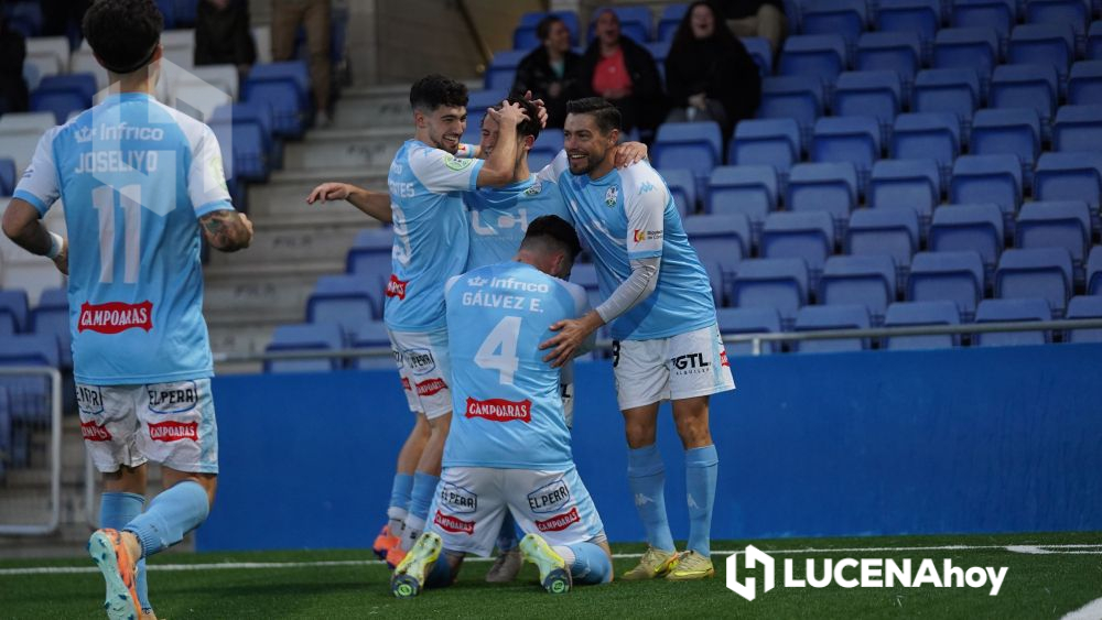 El partido comenzó con el guion esperado: un conjunto celeste dominador y un equipo visitante replegado en su campo. Ni un minuto se había jugado cuando el Ciudad de Lucena tuvo la primera por medio de Alberto García, que remató ligeramente desviado a un buen pase a tras de Jesús Martín. Poco después, en el minuto 6, Diego Canty abrió el marcador para los suyos tras cabecear un gran centro lateral de Manolo Ortiz.