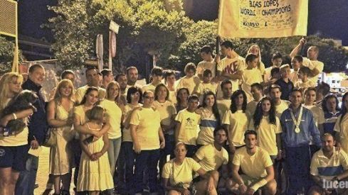 Medio centenar de seguidores, familiares, amigos y compañeros del Club Korio Lucena ofrecieron en la noche del sábado un emotivo recibimiento en el recinto ferial de Lucena al lucentino Blas López, que el pasado viernes, día 9, se proclamó "Campeón del Mundo" en categoría Master en los World Masters Games celebrados en la ciudad italiana de Torino.