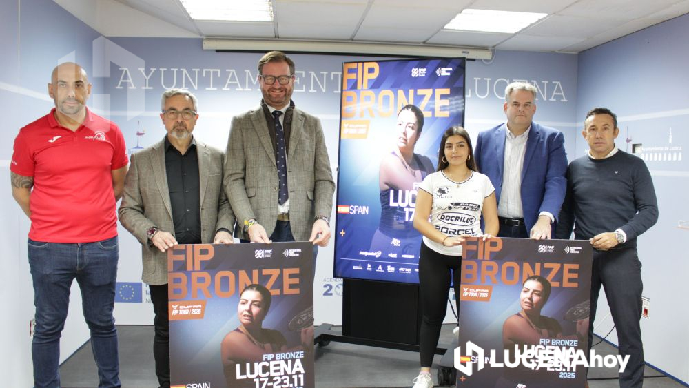 El concejal de Deportes, Ángel Novillo, el secretario general de la Federación Andaluza de Pádel (FAP), Manuel Sánchez, y el delegado de Deportes de la Diputación de Córdoba, Antonio Martín, han presentado esta mañana el torneo internacional FIP Bronze Lucena 2025, que se celebrará del 19 al 23 de noviembre en las instalaciones del Pádel Club Lucena. El evento, promovido por la Federación Internacional de Pádel (FIP), convertirá a la ciudad en sede de una de las pruebas oficiales del circuito mundial, siendo la segunda cita FIP Bronze del año en Andalucía tras la disputada en Sevilla.
