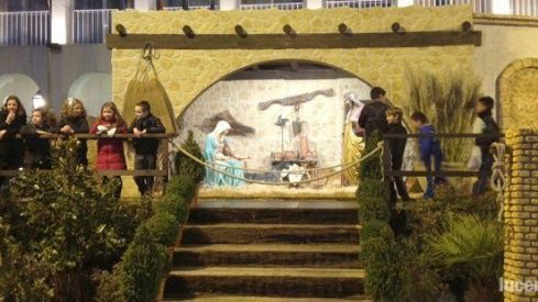 El portal de Belén totalmente renovado el año pasado, ha sido diseñado y realizado porpersonal de la empresa municipal Servimán, y permite visitarlo interiormente a través deuna pasarela que permite recorrer sus distintas zonas y contemplar elNacimiento a escasos metros. Laconcejal de Fiestas, María del Mar Morales, indicaba que el portal reutiliza los materiales del año pasado. Como ya se anunció entonces, es intención del ayuntamiento ir ampliando cada año el tamaño del mismo. Así. en esta ocasión se ha ampliado con la colocación de una nueva casa y una fuente ubicada junto al nacimiento construida con material reciclado. Se ha remodelado también la estructura que el año pasado estaba junto al nacimiento y se le ha dado una nueva ubicación al inicio del camino que recorre todo el portal de Belén. Este año el personal de Servimán ha invertido menos tiempo en su instalación, ya que todos los elementos reutilizables están numerados.