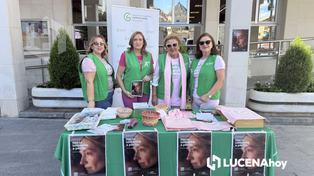 El próximo domingo, 19 de octubre, se conmemora el Día Mundial contra el Cáncer de Mama, y como cada año, la sede local de la Asociación Española Contra el Cáncer (AECC) ha instalado una mesa informativa y de recaudación en el centro de Lucena para sensibilizar a la población y recoger fondos destinados a la investigación y apoyo a pacientes.