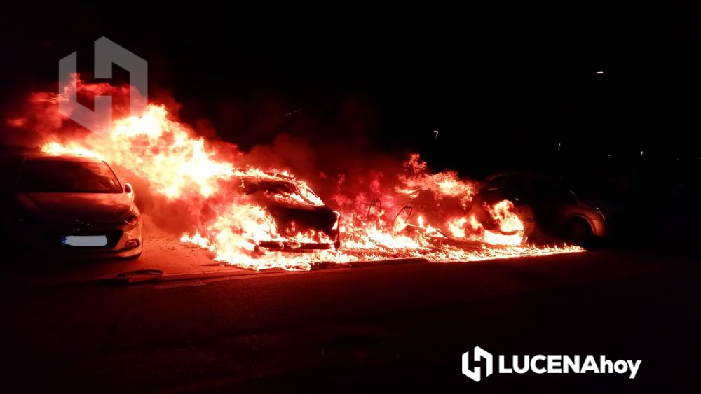 Cinco vehículos estacionados en la vía pública se han visto afectados por un importante incendio registrado a primera hora de la mañana en la avenida Luis Alberto de Cuenca de Lucena.
