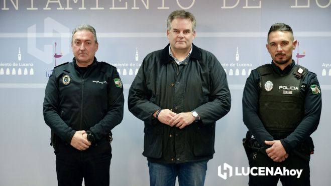 El Ayuntamiento de Lucena ha presentado esta mañana el Plan Especial de Seguridad Ciudadana con motivo de los días centrales de las fiestas navideñas. El concejal de Seguridad Ciudadana, Ángel Novillo, y el inspector jefe de la Policía Local, José Pino, y el inspector David Navas, han explicado este dispositivo, que contempla 50 servicios extraordinarios que se suman a los turnos convencionales de la Policía Local, con el objetivo de garantizar la seguridad y el orden durante las celebraciones navideñas.