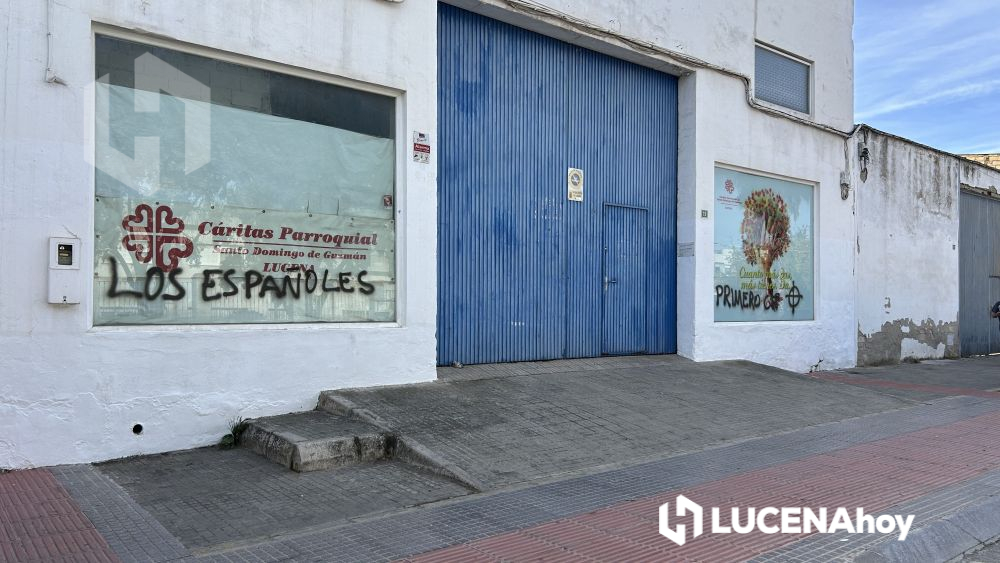 Las fachadas de una de las sedes de la asamblea local de Cruz Roja y de Cáritas de Santo Domingo, ambas situadas a pocos metros en la calle Corazón de Jesús, han sido objeto de pintadas en contra de la población migrante.