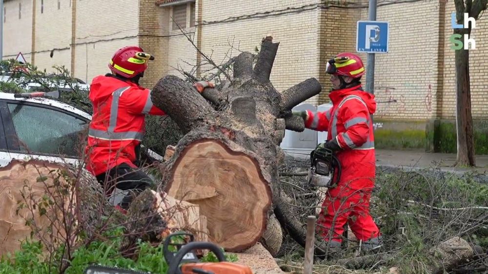 VÍDEO / La borrasca Oriana derriba un árbol de gran tamaño en la avenida de Santa Teresa.